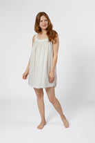 The Julia Tank Nightgown is made with a luxurious brushed cotton; the lightweight material's airy softness is designed to float around your figure with an easy femininity that's underscored by floral lace along the neckline.