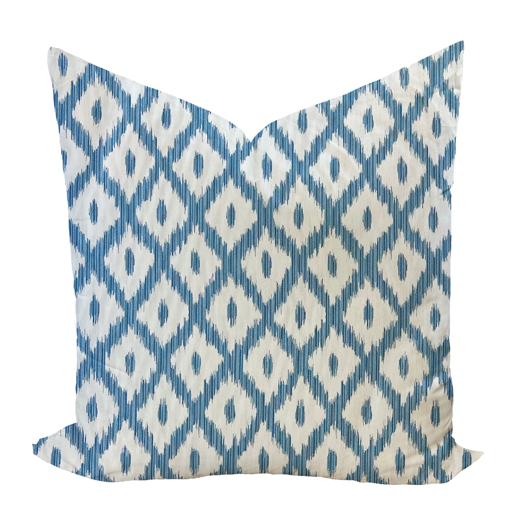 One decorative pillow cover featuring a diamond like design on home decor weight fabric by Kravet.