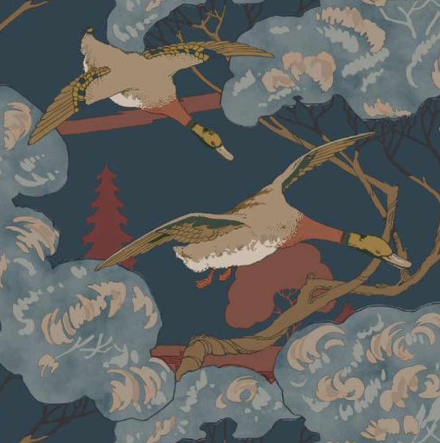 Flying Ducks in Navy by Mulberry Home Pillow Cover