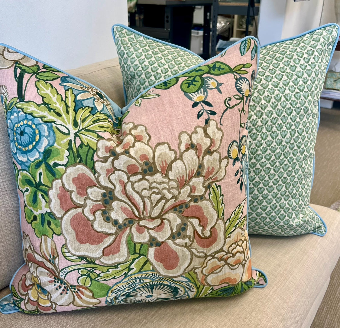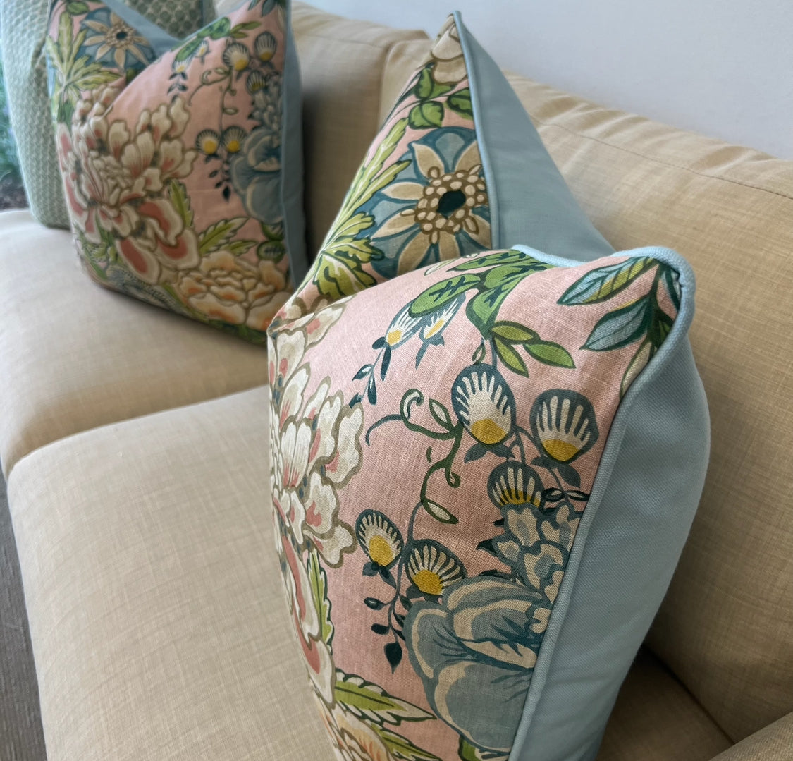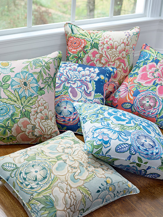 Peony Garden in Spa Blue by Thibaut Pillow Cover