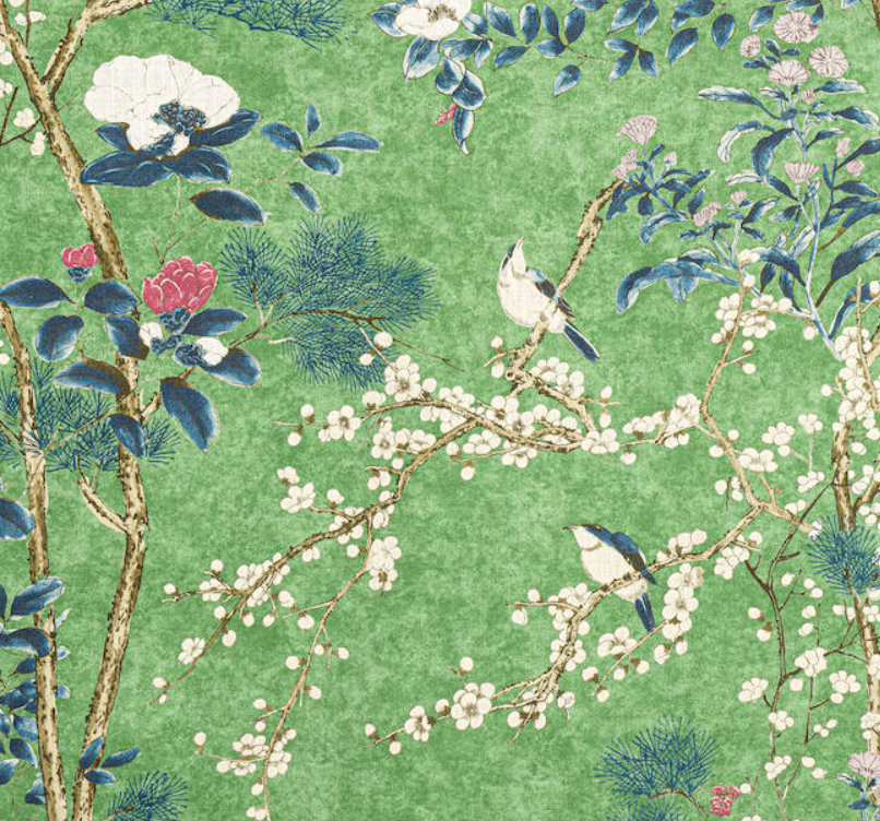 Pagoda Trees in Pink & Green by Thibaut