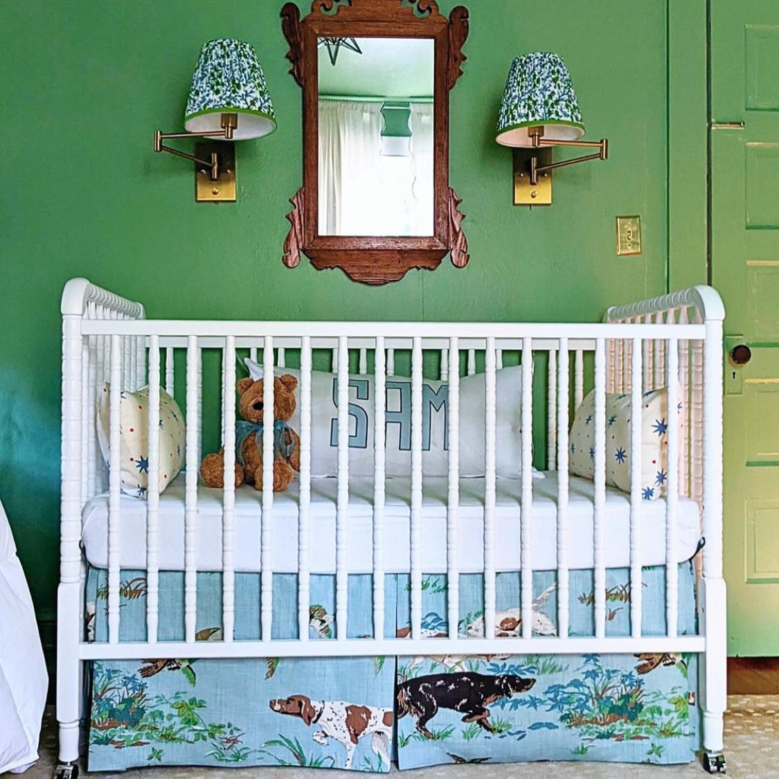 Pointers in Blue Crib Skirt