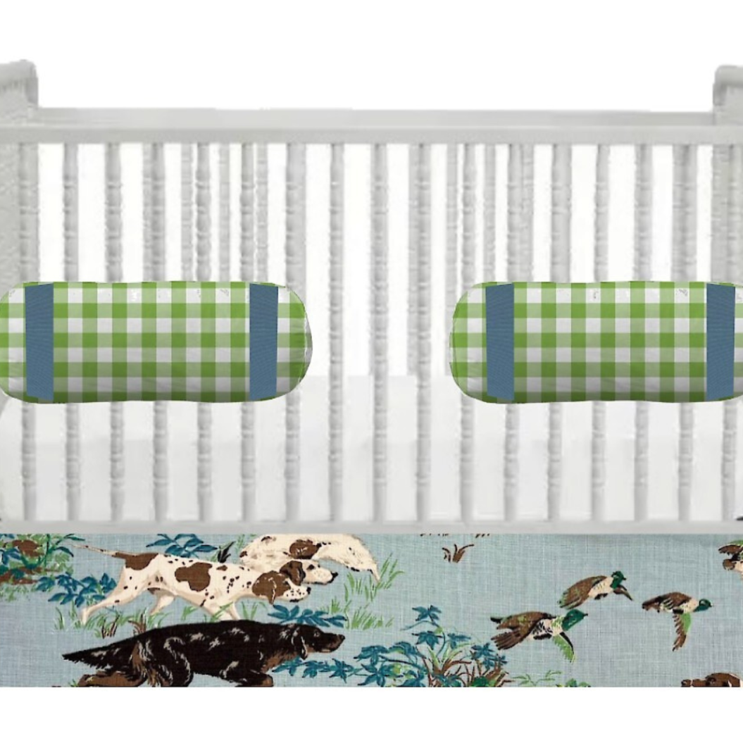 Iva Check in Moss with Tape Bolster Pillow Cover
