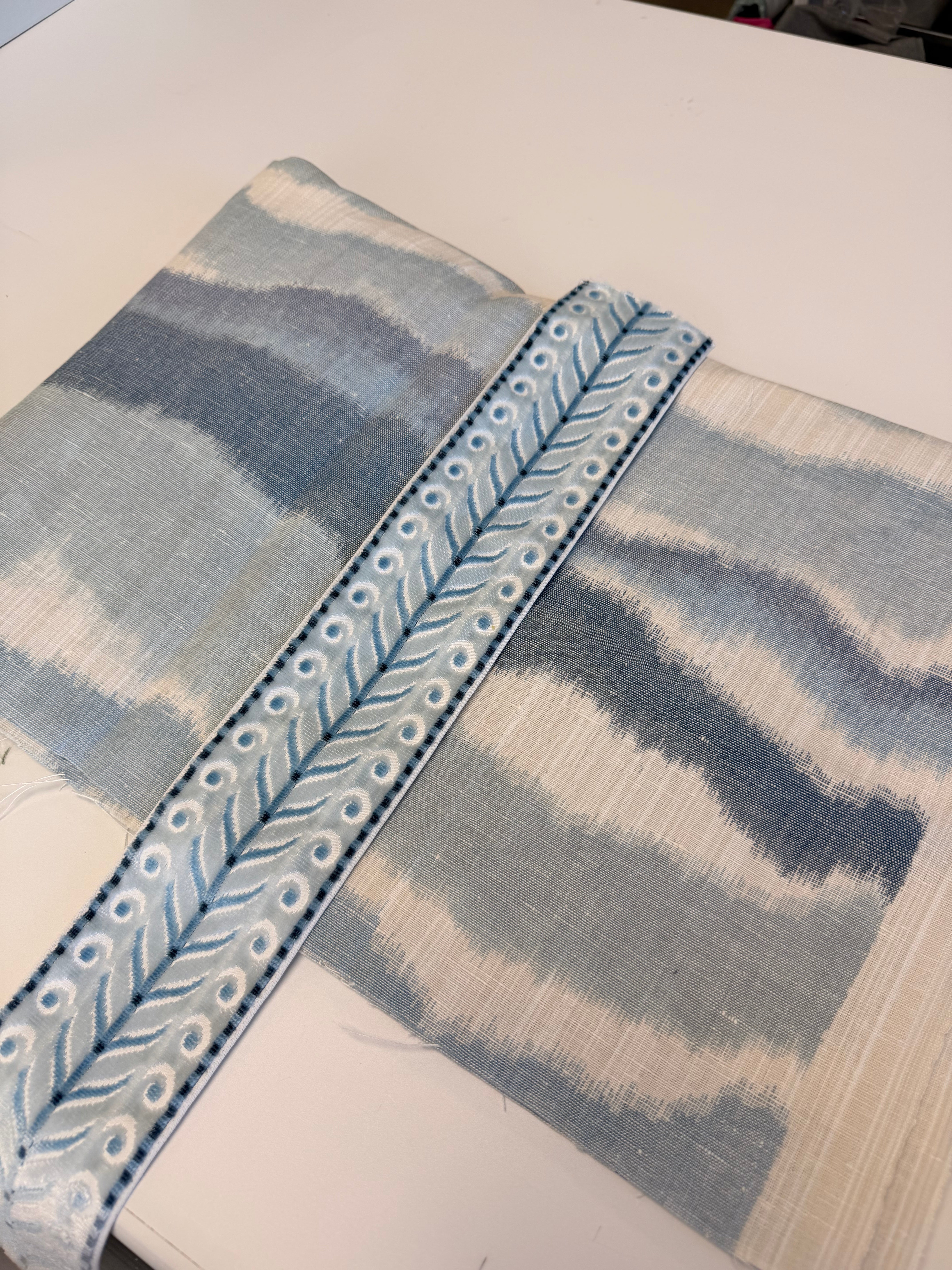 Inventory Sale :: Schumacher Blue Mountainesque with Marion Tape Pillow Covers (PAIR) for 14x22" inserts