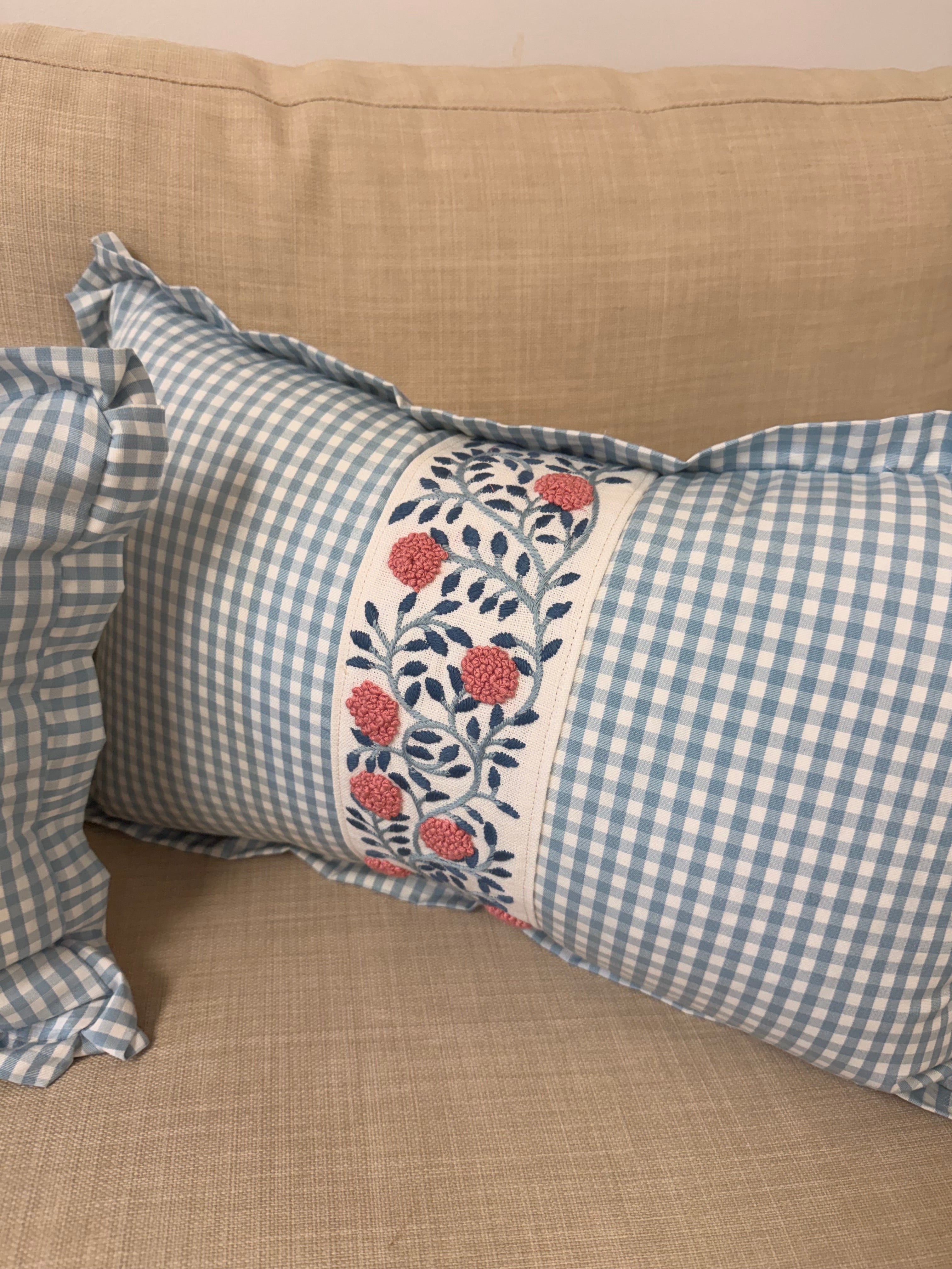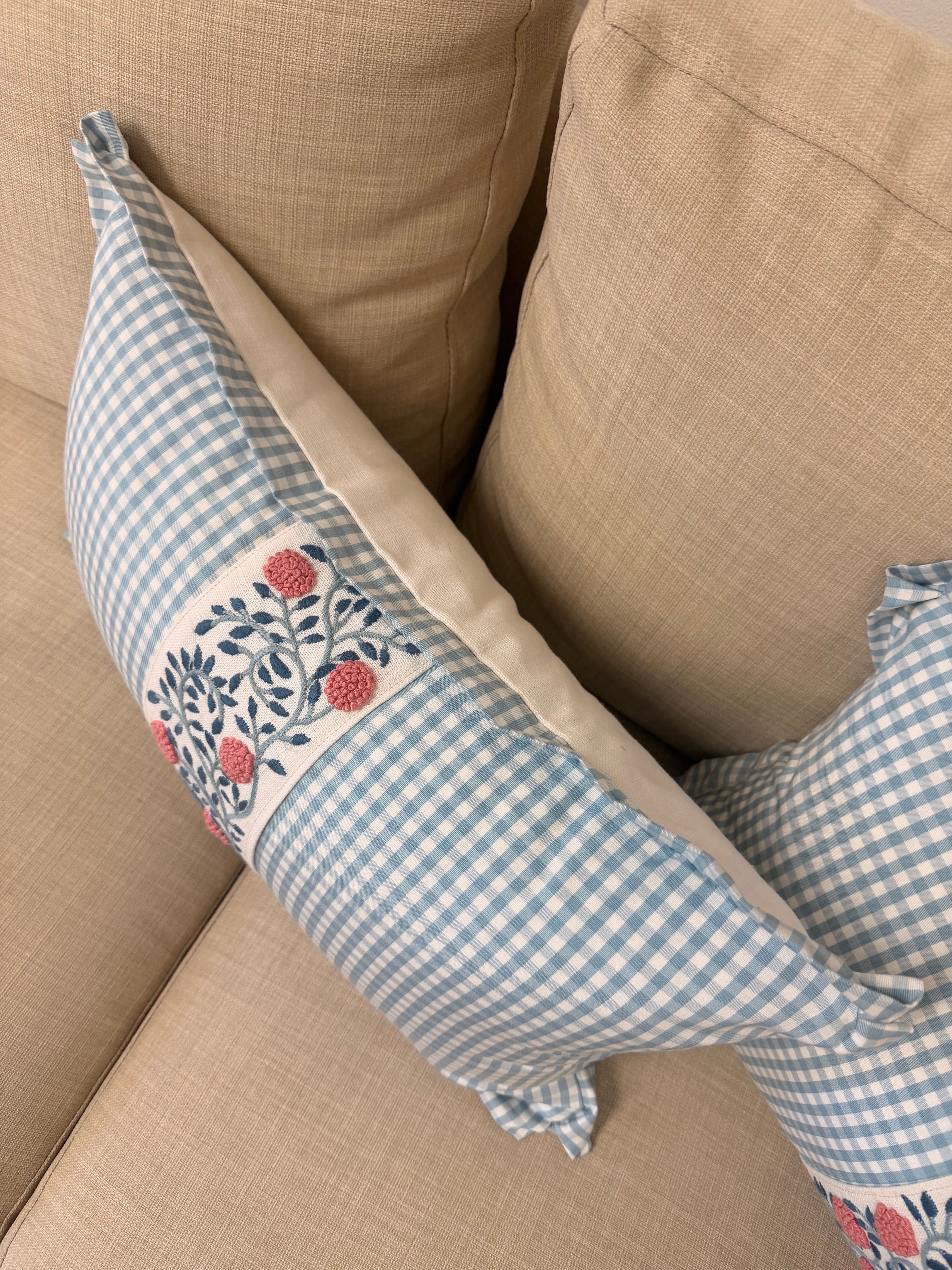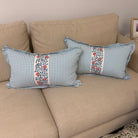 Ready to Ship :: Leighton Check in Sky with Ashoka Tape Stripe (PAIR) for 14x22" inserts