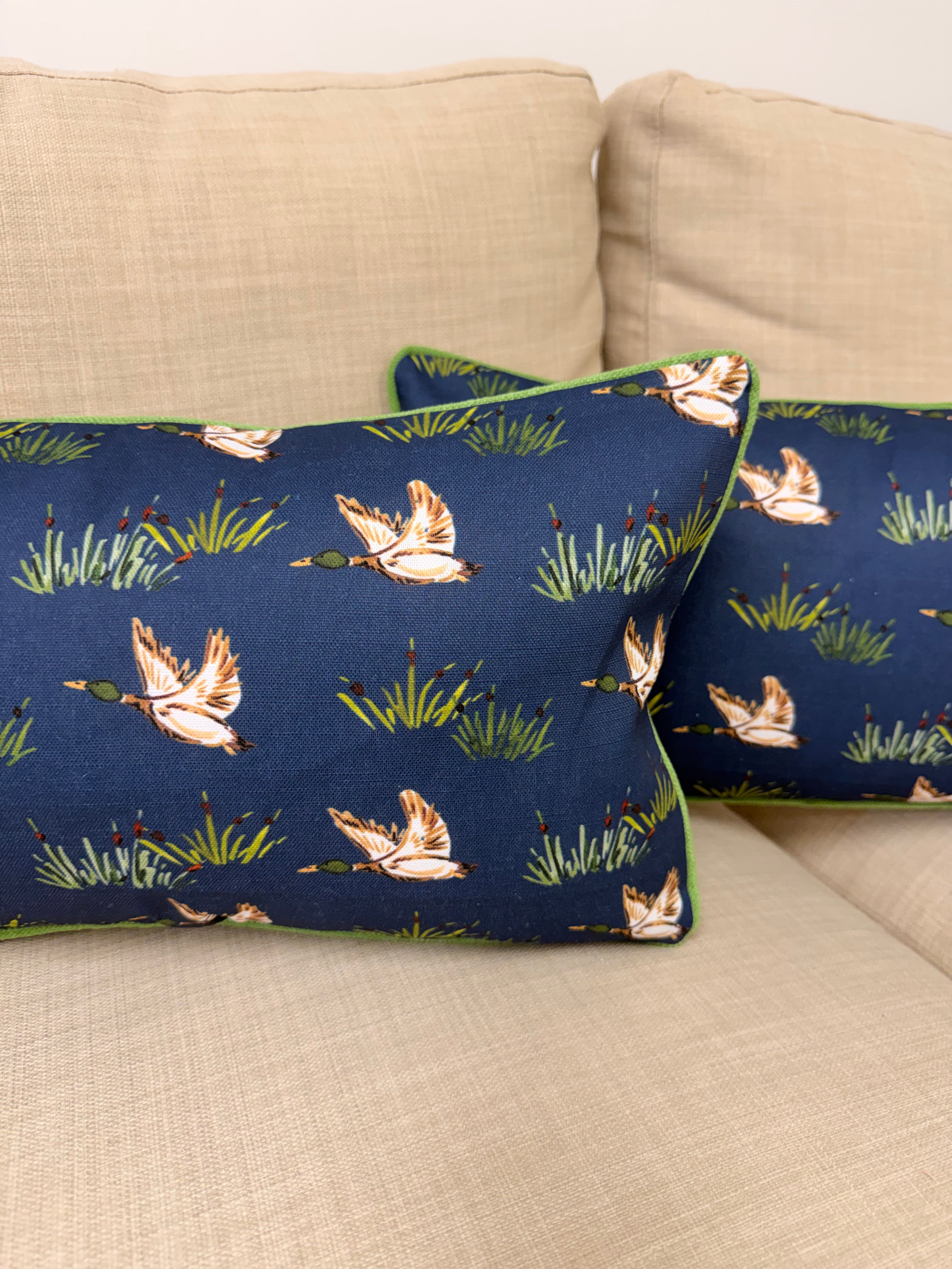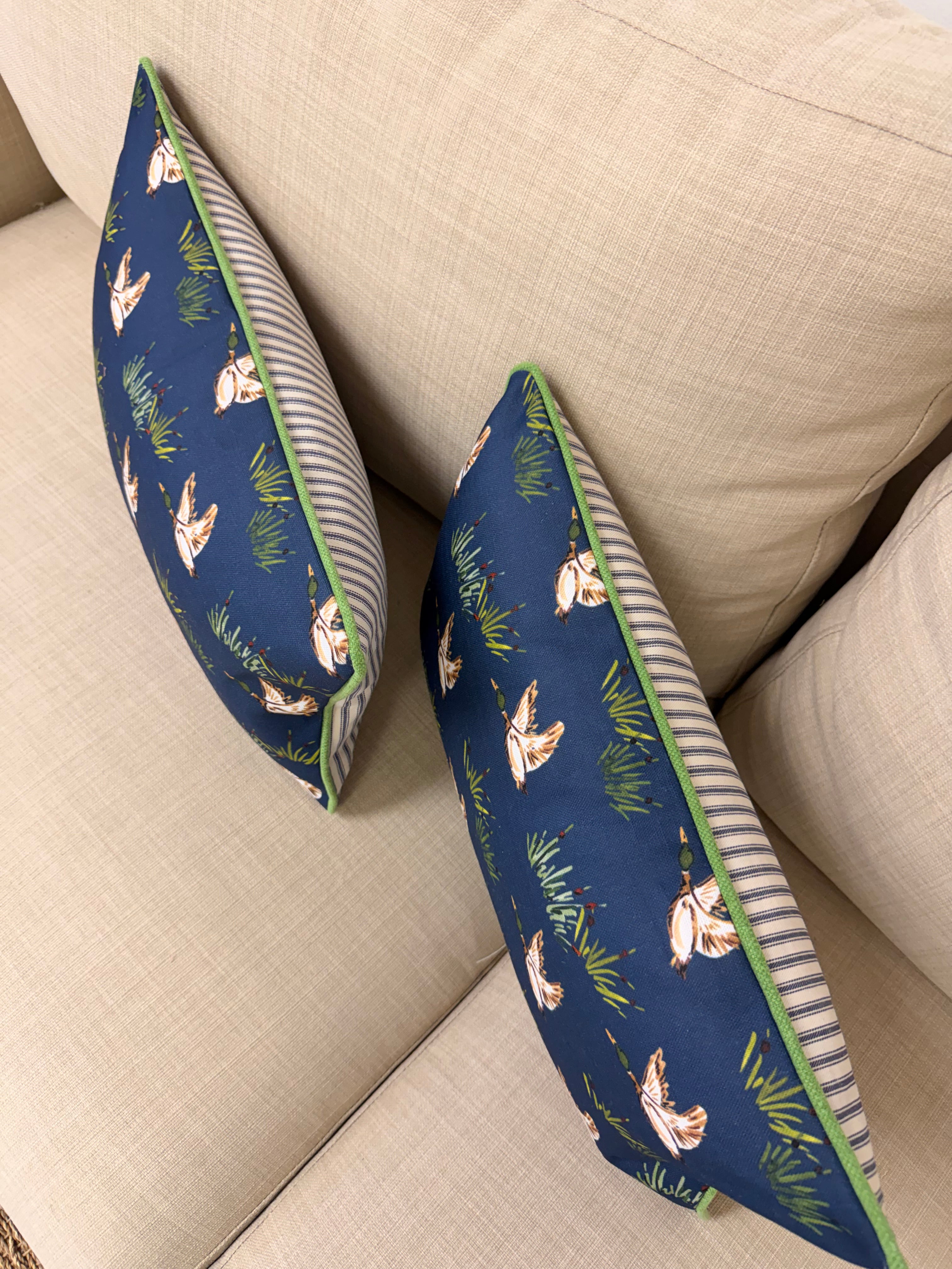 Ready to Ship :: Mac in Indigo with Navy stripe back pillow covers (PAIR) for 12x18" inserts