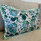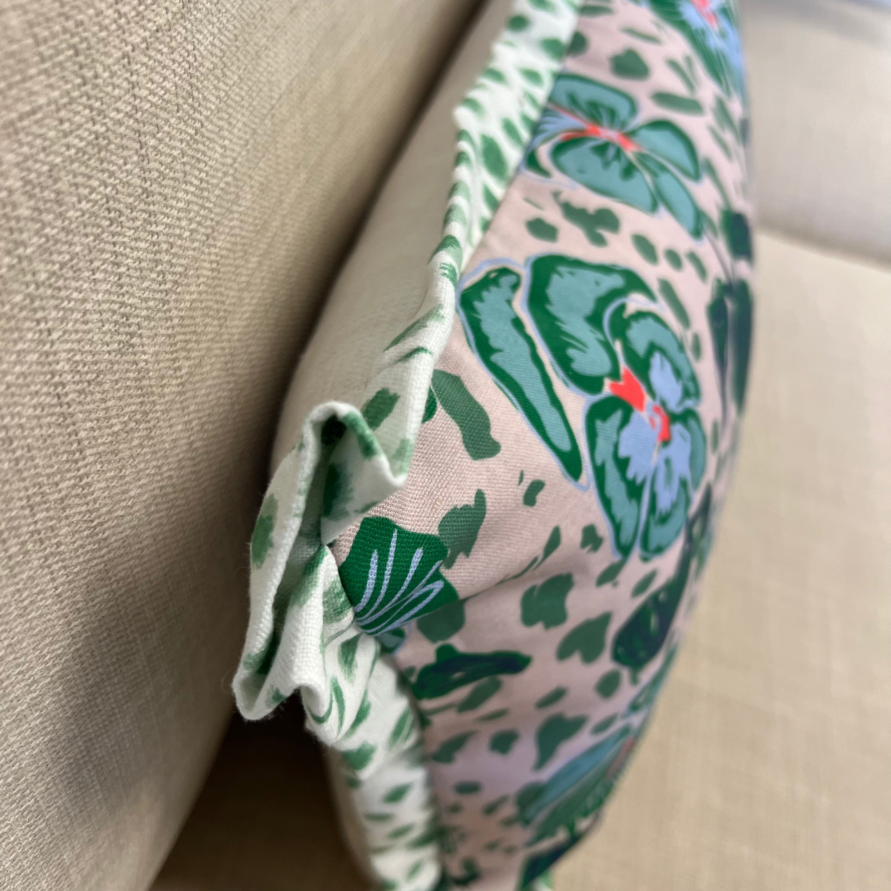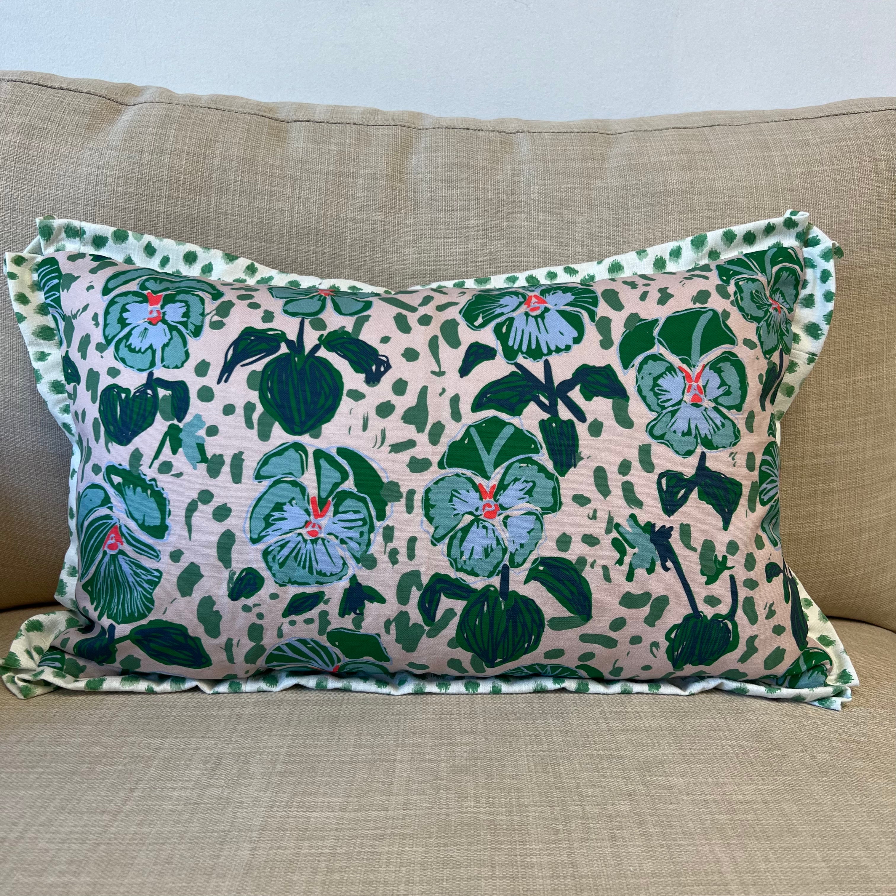 The lumbar cover is in Lulie Wallace Alice - front only w/ Jungle Ikat back and flange. The example pillow uses a 14x22" insert (sewn 12x20).