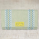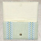 The inside of the clutch is lined with white linen, and contains accordion sides with grommets for a removable chain (chain is sold separately). Click the "Customize Your Bag" button below to see decorative hardware options, and choose your favorite! Overall dimensions are 12” x 7” with a magnetic snap closure.