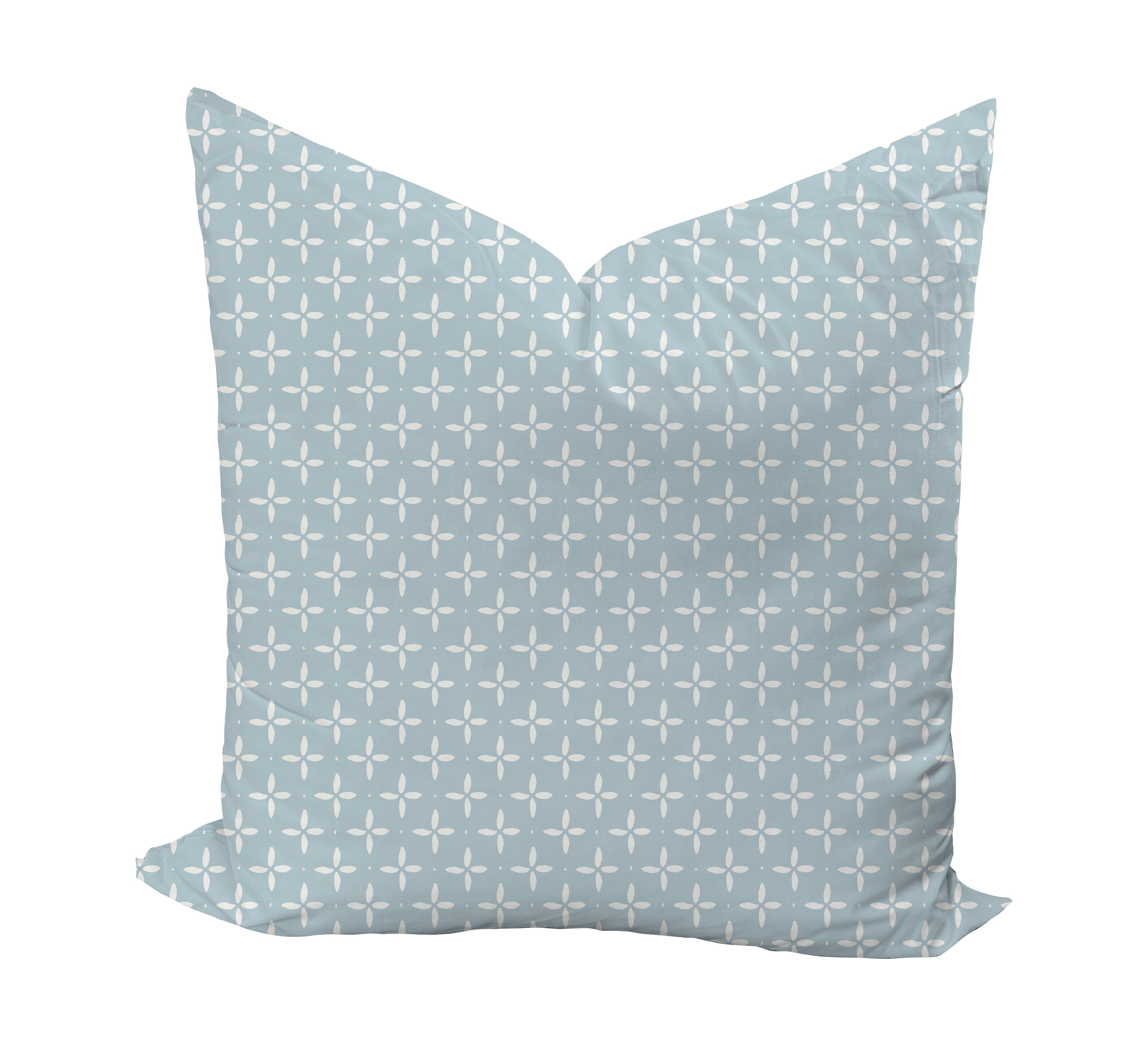 One decorative pillow cover featuring a starred cross print design on home decor weight fabric. This design is a Wheaton Whaley Home exclusive!