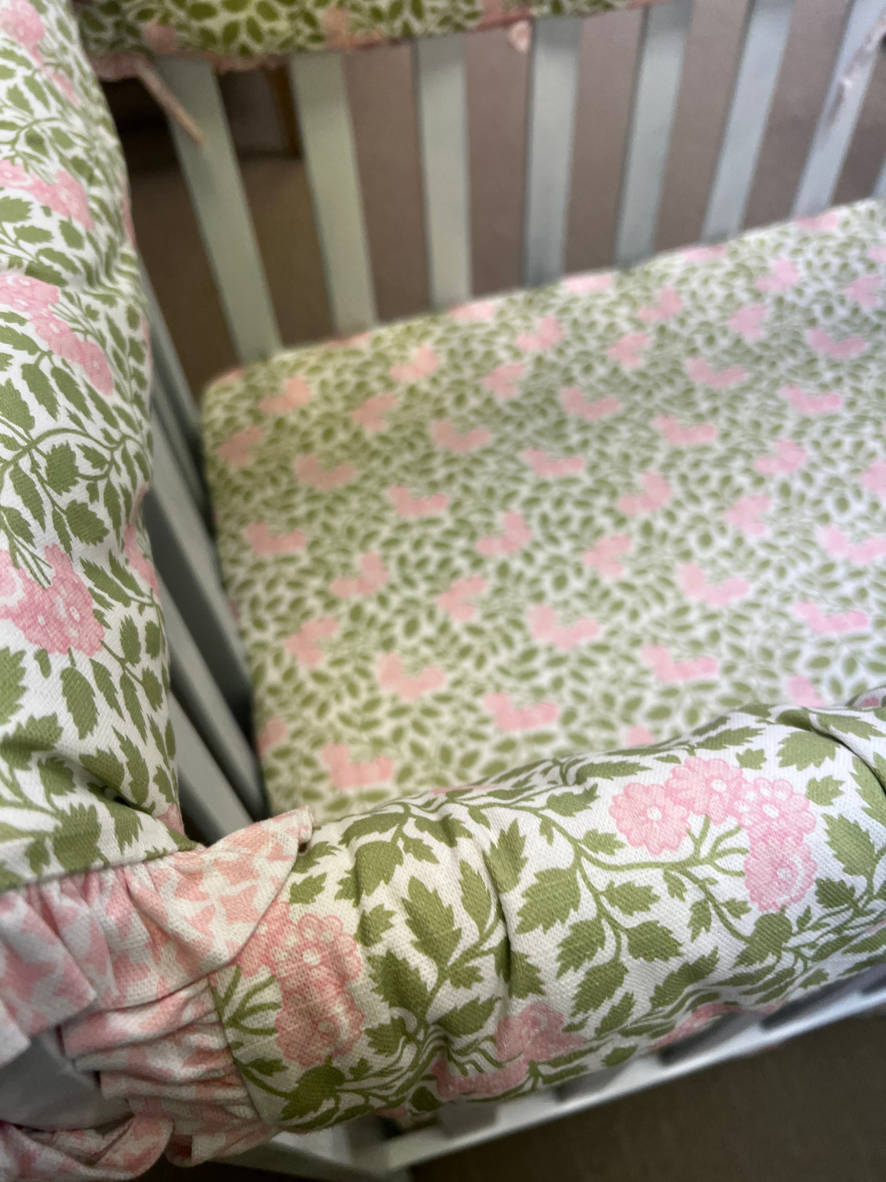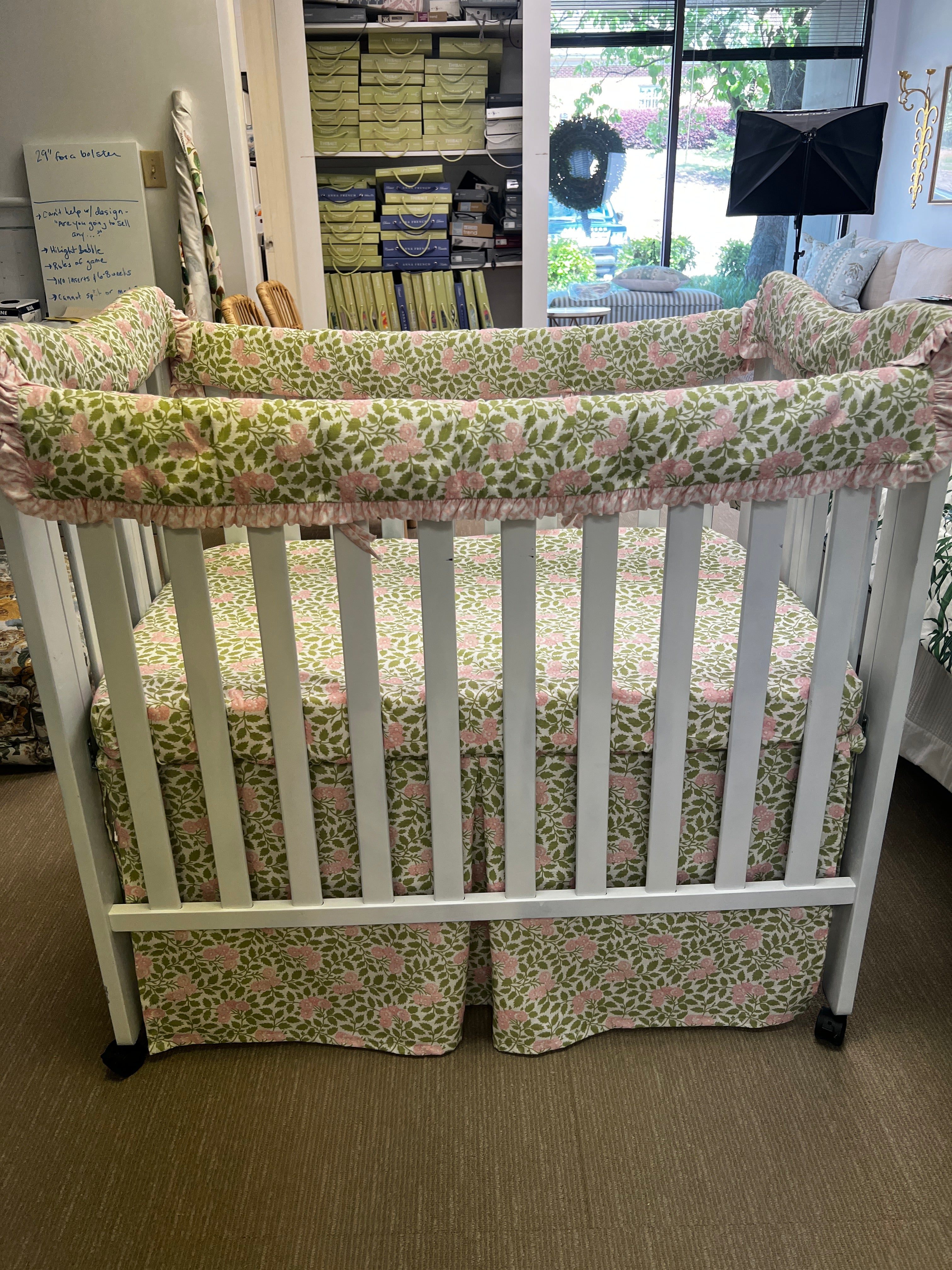 High Point Sample : Travel Crib Bedding Maggie in Pink/Green