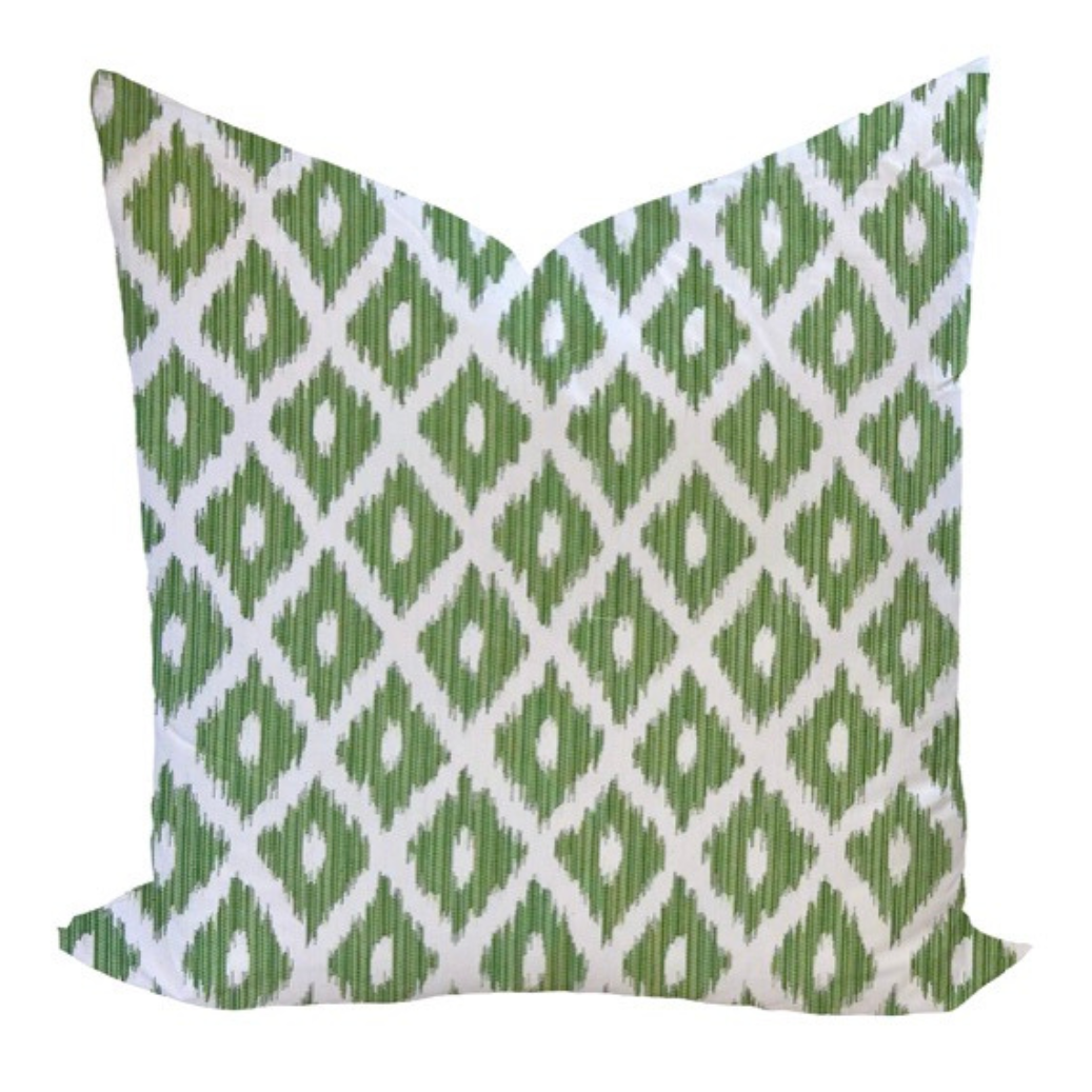 One decorative pillow cover featuring a diamond like design on home decor weight fabric by Kravet.