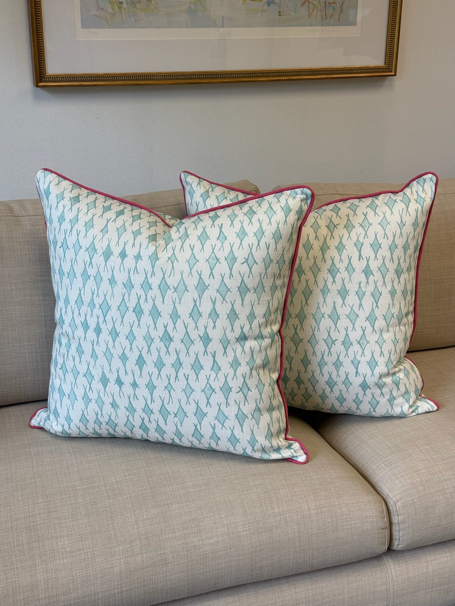 Ready to Ship :: Diamond Daze in Aqua Pillow Covers (PAIR) for 22" inserts
