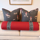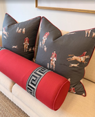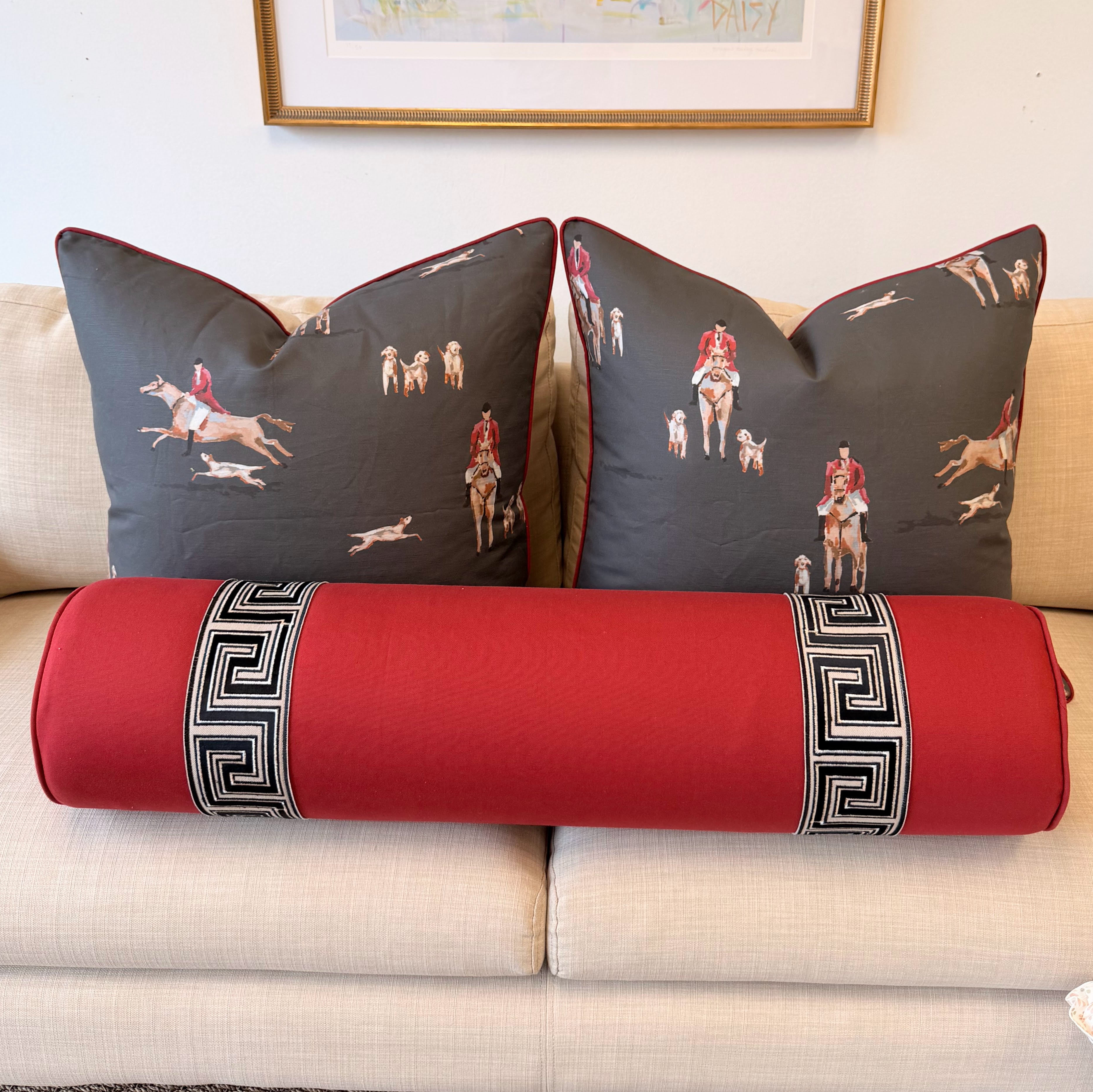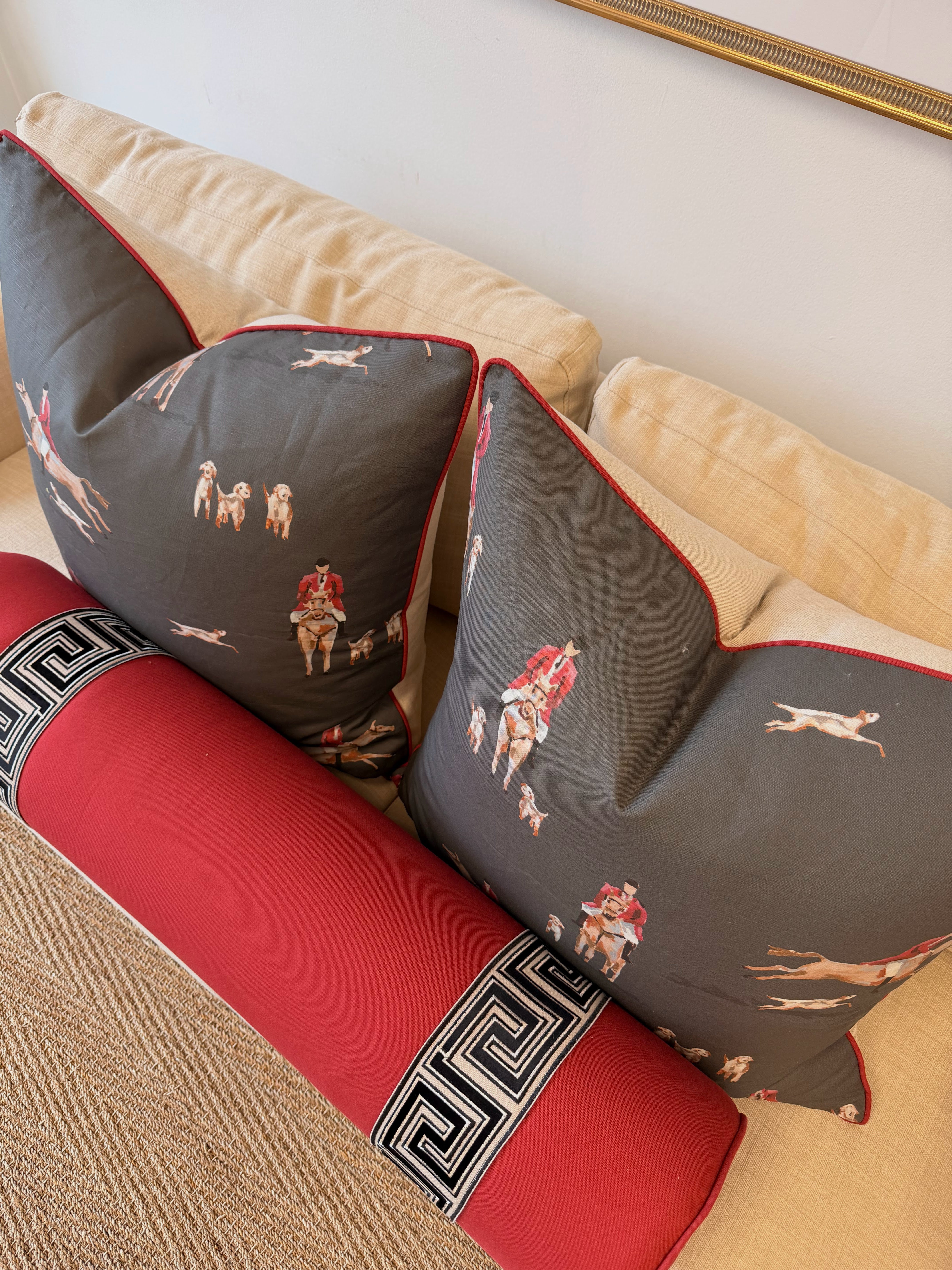 - 2 covers for 28" inserts in Fox Hunt, burgundy welt, linen color back