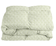 Comforters are made from a cotton/linen blend or sateen cotton material with polyester batting inside. The weight is all season & perfect year round.